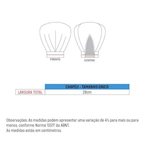 O chapéu de cozinheiro(a) possui ajuste em elástico na parte posterior.