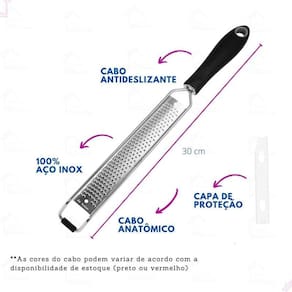 Esse Kit permitirá que você consiga desenvolver e aprimorar suas habilidades na cozinha. A espátula de Inox é ideal para cortar, separar, raspar, transferir e organizar durante o preparo de massas, legumes e confeitaria. Feita em aço inoxidável, fácil de limpar e resistente. -material: Aço Inox -dimensões: 12 cm x 15cm x 2,5 cm O ralador é ideal para ralar cascas de cítricos, como limões, laranjas, além de queijos, cenouras, cebolas e outros legumes. Com lâminas super afiadas, você fará o mínimo esforço para obter um resultado impressionante. Por ser fabricado em aço inoxidável, sua durabilidade é muito maior do que os demais raladores. As cores do cabo do ralador podem variar entre preto e vermelho e serão enviadas de acordo com a disponibilidade em . -material: Aço inoxidável -tamanho das lâminas: afiação fina -cabo antideslizante emborrachado -dimensões: 30 cm de comprimento total e 3,5 cm de largura Todos nossos produtos têm boa procedência e qualidade Envio em 24 horas úteis Temos uma equipe especializada para lhe atender da melhor forma. Nossos produtos são embalados com cuidado para que não haja danos com sua mercadoria. Compra Segura e Garantida Gostou Esse produto pode ser seu Aguardamos sua compra