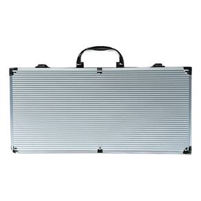 Características do produto Material: aço inox e alumínio Dimensões: 47 x 20 x 7cm Peso: 2,20kg Cor: prateado Marca: fracalanza Modelo: churrasco gourmet