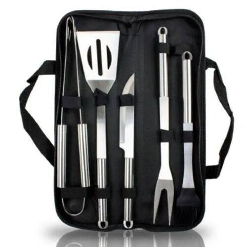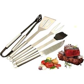 São 5 peças de aço inox neste kit churrasco, além de poder armazenar e carregar em um estojo na cor preta e de composição de qualidade. Auxiliará muito no seu churrasco.