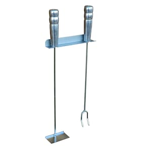 Um ótimo acessórios para mexer o carvão / lenha e preparar seu fogo com segurança. Peça com cabo de madeira revestido de alumínio.