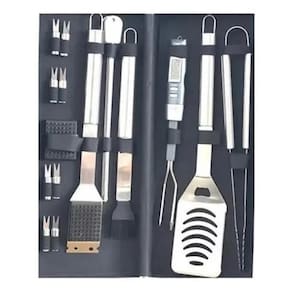 Kit churrasco com termômetro digital grill fork Kit churrasco c/termômetro digital grill fork para carne Kit churrasco 21 peças + Termômetro de carne, com lcd disply digital termômetro grill fork, para churrasco de carne Recursos: Sonda de aço inoxidável 304: com medição precisa de temperatura, resposta rápida, alta estabilidade, pode medir rapidamente a temperatura quente e fria. Celsius / fahrenheit switch para suas diferentes necessidades. Configurações de temperatura predefinidas, todas as temps predefinidas podem ser definidas de acordo com seus gostos desejados. Desligar automaticamente após 10 minutos quando não estiver em uso, o que reduzirá o consumo de energia. Visor lcd. Os algarismos arábicos são grandes o suficiente para serem lidos na tela lcd com clareza. Especial para carne: meça profissionalmente a temperatura da carne, escolha o sabor de acordo com sua preferência Alarme sonoro: quando a temperatura dentro da carne atingir a temperatura predefinida, ele fará um som para lembrá-lo, e você nunca ficará angustiado com memória fraca ou esquecimento repentino. Especificação: Material: aço inoxidável + plástico a tamanho: aproximadamente 35 4 2,5 cm / 13,78 1,57 0,98 pol. Bateria: 2 pilhas aaa não incluídas Lista de pacotes: 1 termômetro grill'. : 90 dias. Marca: Não Informado Ean: 704260206812