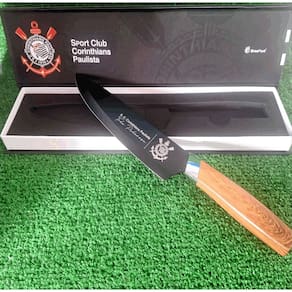Kit Corinthians: Faca de Aço Inox com Cabo de Madeira e Logo Gravado a Laser + Tabua de churrasco corinthians.