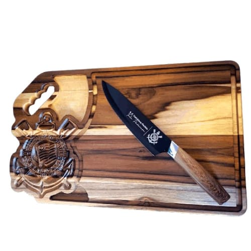 Kit Churrasco Corinthinas Tabua +Faca de Carne Oficial Presente Kit Corinthians: Faca de Aço Inox com Cabo de Madeira e Logo Gravado a Laser + Tabua de churrasco corinthians.