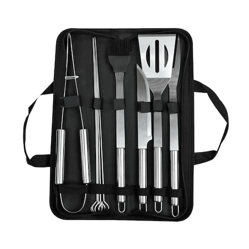 O Conjunto de utensílios para churrasco com 10 peças é uma escolha popular para entusiastas de churrascos e grelhados, pois oferece uma variedade de ferramentas essenciais para preparar e servir deliciosas refeições ao ar livre. Esse Kit é ideal para facilitar esse momento de descontração e lazer, tendo um lindo design e fino acabamento. São 9 peças todas em aço inox, com cabo e alça para serem pendurados, tudo acondicionado em um estojo de poliéster com zíper facilitando na organização e no transporte.