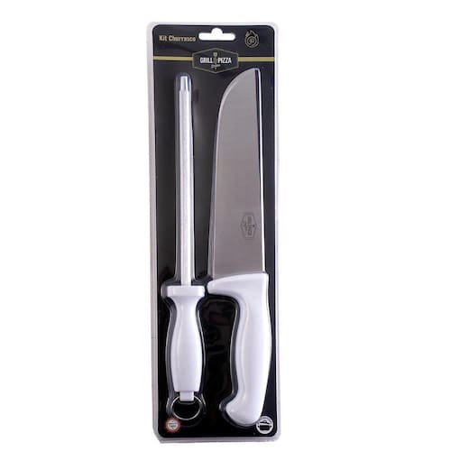 Com este conjunto de faca e chaira (afiador) da linha Grill & Pizza da Prana, você terá mais praticidade no seu churrasco e almoços em família , produzidos com materiais de excelente qualidade para garantir durabilidade, são resistentes e fáceis de manusear, com estes acessórios você poderá realizar os cortes nas suas receitas sem preocupação.