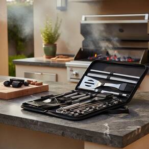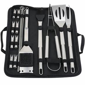 INTERESSE O Jogo de utensílios para churrasco em aço inox de 20 peças oferece a solução técnica para quem busca precisão na frente da grelha. Fabricado integralmente em metal resistente, este conjunto elimina o uso de componentes que oxidam ou retêm odores, garantindo uma manipulação segura e eficiente dos alimentos.