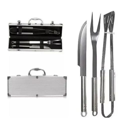 Kit Churrasco Maleta Com 3 Peças Descrição Para aquele churrasco de final de semana. Ideal para facilitar esse momento de descontração e lazer. Contém 03 peças em aço inox, acondicionadas em uma maleta de alumínio. O kit churrasco possui peças de ótima qualidade com material resistente e durável. A maleta é durável, possui uma bela apresentação para presentear. O material inoxidável garante a durabilidade das peças. Maleta em alumínio com trava - Utensílios de inox - Prático e resistentes utensílios em aço inox - Kit formado por peças essenciais no preparo do churrasco - Os utensílios ficam presos na maleta por elástico e tiras aderentes - Ótima opção para presente ou para seus churrascos com amigos e familiares - Espessura dos utensílios: 2mm Itens Inclusos - 01 Garfo em inox: tamanho aprox. Garfo: 34cm - 01 Faca em inox: tamanho aprox. Faca: 32cm - 01 Pegador em inox: tamanho aprox. Pegador: 33,5cm - 01 Maleta em alumínio: tamanho aprox. Maleta: 37x10x8cm comp. X larg. X a Ean: 7899670813606