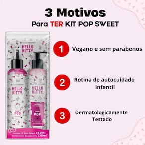 Kit contém:1 Body Splash Hello Kitty Sweet Pop 240ml e 1 Loção Hidratante Hello Kitty Sweet Pop 230ml