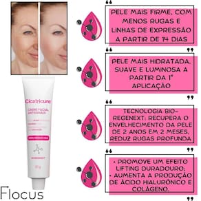 Kit Cicatricure Contorno Olhos Porcelana Antissin Bem vindo a a loja Flocus. É um prazer tê-lo a como nosso a cliente CONTEÚDO: 1 Creme Facial Antissinais Cicatricure - 50G 1 Gel Creme Facial Antimarcas Cicatricure Porcelana - 50g 1 Creme Contorno de Olhos Rugas, Bolsas e Olheiras - 15G Cicatricure é especialista no cuidado com a pele. Uma marca parceira, com soluções eficazes e acessíveis pensadas especialmente para todos aqueles que querem cuidar da pele. Sua exclusiva fórmula com Bio-Regenext ajuda a recuperar a elasticidade e a firmeza da pele, reduzindo visivelmente as rugas e linhas de expressão. O Creme Facial Cicatricure Antissinais possui a tecnologia Bio-Regenext que transmite informações de uma célula para outra, promove a regeneração natural e repara os danos na pele proporcionando aparência mais jovem. Cicatricure Contorno dos Olhos reduz o volume das bolsas em 28% aos 15 dias e em 40% aos 30 dias E proporciona olheiras menos visíveis. Sua fórmula de textura leve diminui rugas e linhas de expressão e reduz o volume das bolsas. O Gel Creme Facial Cicatricure Porcelana Antimarcas apresenta fórmula que oferece hidratação imediata, resultando em uma pele mais suave e macia desde a primeira aplicação. Promove uma aparência radiante e luminosa, realçando a beleza natural da pele e não obstrui os poros, evitando o surgimento de cravos e espinhas e mantendo a pele saudável. É indicado para uso no rosto, colo e pescoço e formulado com Hidrolisado de Pérola que ajuda a reduzir marcas e ilumina e uniformiza a pele em apenas 4 semanas. Hidrolisado de Pérola: conhecido por sua capacidade de ajudar a nutrir e revitalizar a pele, proporcionando hidratação, luminosidade, suavidade e uma aparência mais radiante. Pele hidratada, com marcas reduzidas e mais uniforme. INDICAÇÃO: Todos os tipos de pele. BENEFÍCIOS: REDUZ RUGAS possui a tecnologia Bio-Regenext, que recupera o envelhecimento da pele de 2 anos em 2 meses e reduz as rugas profundas; MAIS FIRMEZA reafirma a pele, com resultados a partir da 1 aplicação; INGREDIENTES A fórmula é rica em glicerina vegetal, óleos, manteigas e extratos vegetais que nutrem e hidratam a pele profundamente favorecendo a maciez e radiância da pele; TOQUE SECO Com partículas absorvedoras de oleosidade, confere toque seco e matifica a pele instantaneamente. Fórmula resistente à água e ao suor. MODO DE USO: Creme Facial: Aplique pela manhã e à noite no rosto, pescoço e colo sobre a pele limpa e seca. Faça movimentos de baixo para cima até completa absorção. Cicatricure Porcelana: Aplique o produto pela manhã e à noite sobre a pele limpa e seca. Massageie suavemente o rosto, pescoço e colo, evitando a área dos olhos. Creme Contorno de Olhos: Utilizar pela manhã e à noite em todo o contorno dos olhos, incluindo a área das pálpebras. Massagear com movimentos suaves desde o interior até o exterior do contorno dos olhos. Agradecemos por escolher a Loja Flocus e por confiar em nós para cuidar da beleza dos seus cabelos. Em caso de dúvidas, favor enviar sua pergunta Flocus