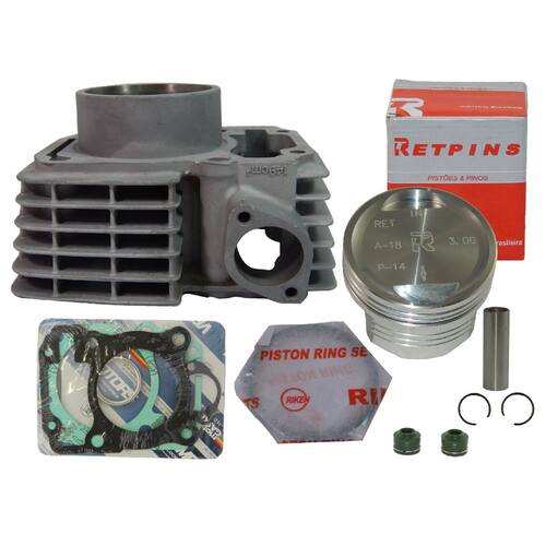 Kit Cilindro Pistão Anéis Titan Fan Bros Cg 150 3mm Retpins Marca: Retpins Modelo: Cg 150 / Titan 150 / Fan 150 / Bros Nxr 150 Refere-se: 01 Cilindro + 01 Pistão + 01 Pino do Pistão + 02 Trava do Pistão + 01 Jogo de Anéis + 01 Kit A de Junta + 02 Retentores de válvula A instalação é simples, apenas da atual sem nem uma modificação ou adaptação. Part Number 544801255444 Technical card - : 58456988 - Inclui pistões: Sim - Inclui aros: Sim - Diâmetro do cilindro: 60,3 - Número de peça: 12544558