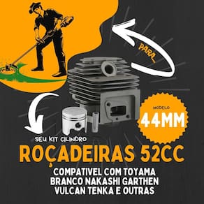 leia atentamente a descrição antes de comprar o produto - produto de alta qualidade e durabilidade. - produto compatível com modelos citados. - aconselha-se um para manutenção do seu equipamento. - imagens meramente ilustrativas. características Modelos: 52cc Diâmetro do cilindro: 44mm Compatibilidade: toyama, branco garthen, nakashi, trapp shindaiwa, kawashima, yamasaki e outras marcas. + informações 1. Alta qualidade: nossa kit cilindro e pistão de roçadeira é de alta qualidade, é resistente, durável e possui excelente resistência à oxidação. 2. Cilindro : acabamento requintado e desempenho estável, é o cilindro perfeito. Certifique-se da sua roçadeira ser de um modelo com 44mm que são a maioria das marcas do mercado de 52cc. 3. Dimensão: esse kit será um ótimo substituto para seus antigos ou quebrados que possuem 44mm para o pistão. 4 .Ampla aplicação: pode ser normalmente para roçadeiras, aparadores, cortadores de grama de múltiplas marcas. Basta conferir as informações das características com o que precisa. 5. 100% : prometemos a cada cliente uma satisfação de compra de 100%, sinta-se à vontade para entrar em contato conosco se tiver alguma dúvida sobre sua compra. Nós lhe daremos uma resposta e detalhada dentro de 24 horas. Clique para comprar agora 6.Embalagem: 1 cilindro + 1 pistão + 2 anéis + 1 pino + 2 travas do pino 7.Observação: as marcas citadas são apenas para referência de compatibilidade e não têm qualquer relação com a marca do anúncio e embalagem é ilustrativa. Marca: Não Informado