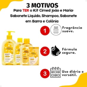 Kit Cimed João e Maria: Sabonete Liquído 400ml, Shampoo 200ml, Sabonete em Barra 75g e Colônia 200ml