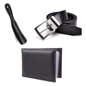 Kit Cinto Masculino Dupla Face Fivela Com Carteira Slim e Calçadeira Para Sapatos em Geral - Preto - 120