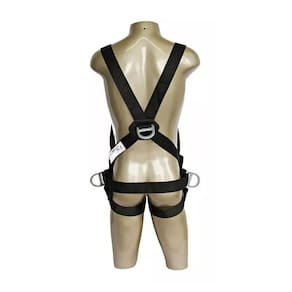 O cinturão de segurança tipo paraquedista, confeccionado em fita primária em poliéster de 45 mm e fita secundária em poliéster de 25 mm, possui 03 meias argolas estampadas de aço, sendo 01 dorsal para ancoragem e 02 laterais para descanso para talabarte. Dotado de 04 fivelas de chapa de aço sem pino para regulagem, sendo 01 peitoral, 01 na cintura e 02 nas pernas.