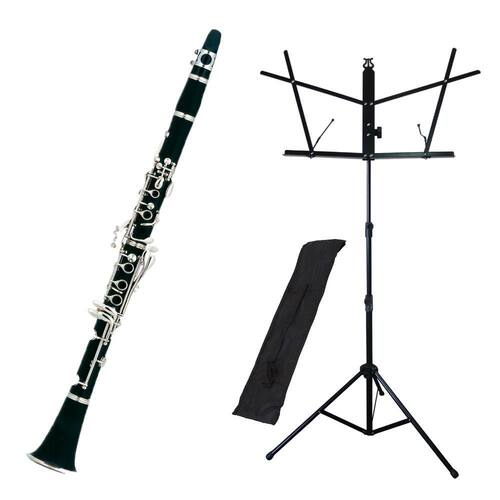 O Clarinete soprano modelo standard da New York é banhado a níquel possui corpo em baquelite parafusos em aço inoxidável e acabamento brilhante. É um instrumento ideal para iniciantes que desejam alcançar um melhor desempenho. Acompanha estante de partitura dobrável com regulagem de altura de 3 estágios. De instalação simples e com sistema de fixação das folhas a estante S1 possui acabamento em epoxi, é compacta e fácil de manusear além de ser resistente, acompanha bag para facilitar o transporte.
