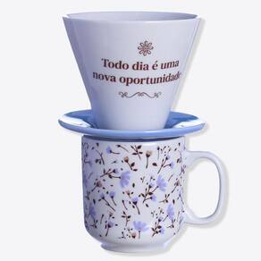 O produto é produzido em território nacional, feito em porcelana, possui detalhes incríveis que vão fazer você se apaixonar! Se você é o doido dos cafés, seu momento de brilhar chegou! Acompanha um coador que vai mudar a forma que você prepara seu cafezinho, basta adicionar o filtro no coador, o pó de sua preferência, água quente e pronto! Do coador para a caneca, garantindo aquele café quentinho e claro, muito ânimo para começar o dia!