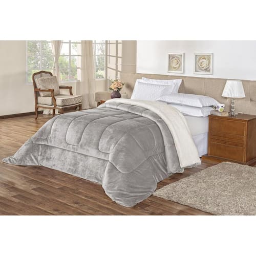 Composição: Face 1 coberta de microfibra soft Face 2 coberta de lã de carneiro Enchimento manta 100% poliéster