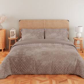 Toque aveludado O tecido flannel com acabamento brushed, que muda de textura ao passar a mão, oferecendo uma sensação de maciez gostosa e envolvente.