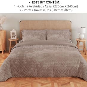 Composição do Kit: 1 Coberdrom Dupla Face Casal (220 cm x 240 cm) 2 Porta-travesseiros (50 cm x 70 cm) Dupla Face: Sherpa extra macia e tecido flannel texturizado em alto relevo Efeito Brushed: Muda de textura ao passar a mão Tecido: 100% Poliéster Marca: BF Colchões