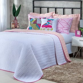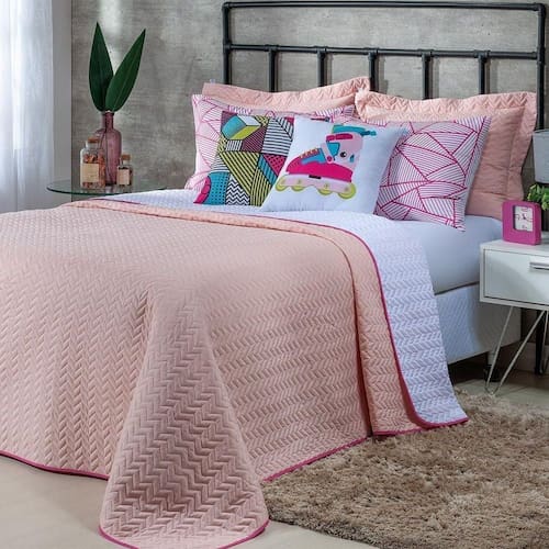 Kit Cobre Leito 7 Peças Queen Colorful To Decorando 100% Poliéster - Patins Rosa