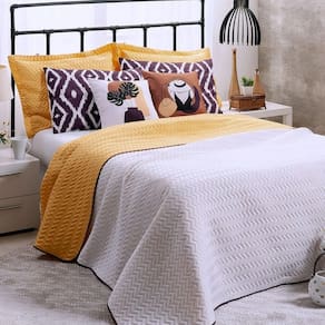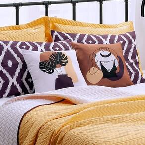Kit Completo e Coordenado: Com 7 peças inclusas, este kit oferece uma solução completa para decorar, incluindo cobre leito, porta travesseiros, fronhas e duas capas de almofada.