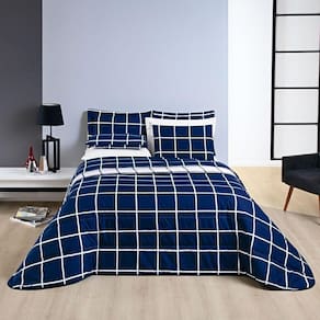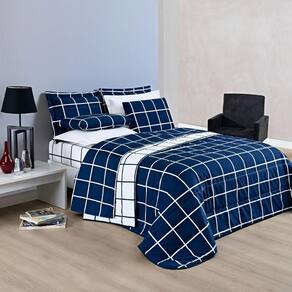 Kit Cobre Leito Brooklyn Queen Quadriculado Micropercal 200 Fios 3 Peças - Azul Marinho