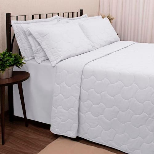 Conteúdo e Medidas:Kit Cobre Leito Liso Sonata- 03 Peças 01 Cobre Leito em Matelasse (2,60m x 2,40m) 02 Porta Travesseiros (0,50cm x 0,70cm)