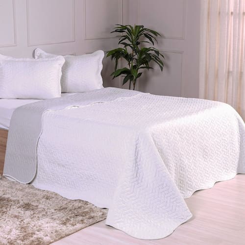 • 1 Cobre Leito Casal Lottus Aveludado Matelassê Ultrassônico 210x230cm 2 Porta Travesseiros Aveludado Matelassê Ultrassônico 50x70cm