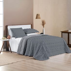 Kit Cobre Leito Colcha Alexa Pompom King Dupla Face Micropercal 3 Peças - Cinza - Única