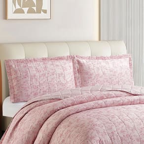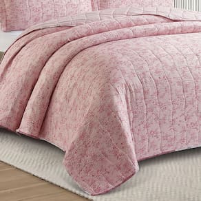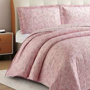Kit Cobre Leito Colcha Anarruga Estampada Aurora 3 Peças Queen 240x260cm Sonhare - Rosa