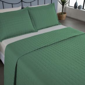 Kit Cobre Leito Colcha Bellini Casal Padrão Dupla Face Percal 300 Fios Textura Matelassê 3 Peças - Verde Kit Cobre Leito Colcha Bellini - O Conforto que Você Procura