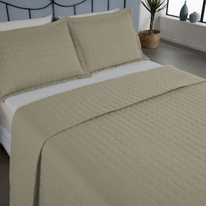 Kit Cobre Leito Colcha Bellini King Dupla Face Percal 300 Fios Textura Matelassê 3 Peças - Cáqui - Única