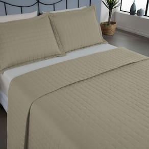 Kit Cobre Leito Colcha Bellini Queen Dupla Face Percal 300 Fios Textura Matelassê 3 Peças - Cáqui - Única