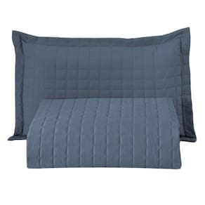 Kit Cobre Leito Colcha Bellini Solteiro Dupla Face Percal 300 Fios Textura Matelassê 2 Peças - Azul - Única