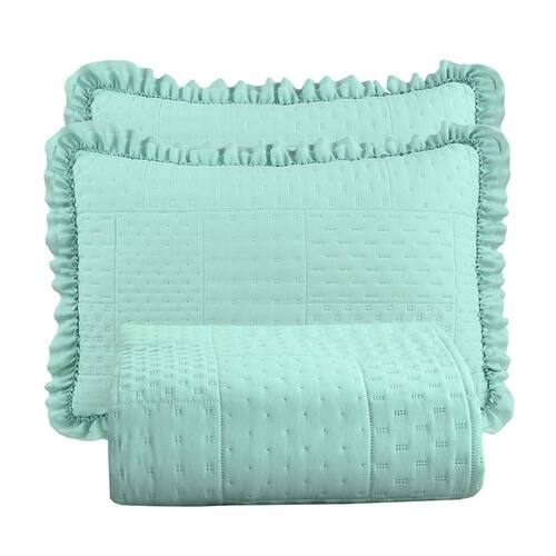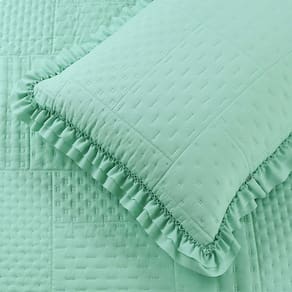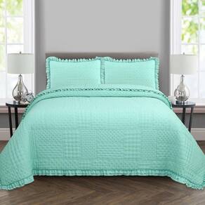 Seu design acolchoado matelado em padrão geométrico transmite sofisticação, enquanto os babados delicados nas bordas adicionam um toque clássico e romântico ao visual da sua cama. Além de decorar, o cobre leito é resistente, fácil de lavar e de secagem rápida, garantindo praticidade para o dia a dia.