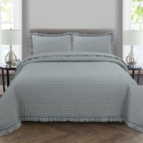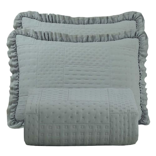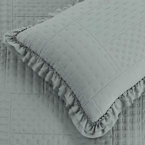 Seu design acolchoado matelado em padrão geométrico transmite sofisticação, enquanto os babados delicados nas bordas adicionam um toque clássico e romântico ao visual da sua cama. Além de decorar, o cobre leito é resistente, fácil de lavar e de secagem rápida, garantindo praticidade para o dia a dia.