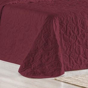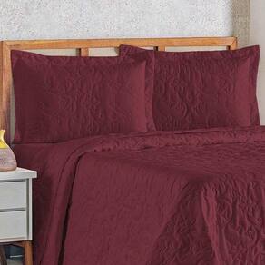 Kit Cobre Leito Colcha Celeste Queen 3 Peças Matelado Floral 180 Fios - Vinho