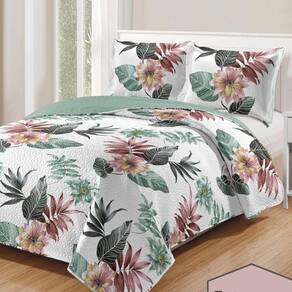 Kit Cobre Leito Colcha Daily Casal 3 Peças Dupla Face Estampado - Floral 31 - 100% Poliéster