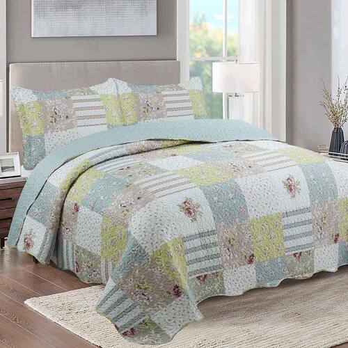 Kit Cobre Leito Colcha Daily King 3 Peças Dupla Face Estampado - Patchwork Maite - 100% Poliéster