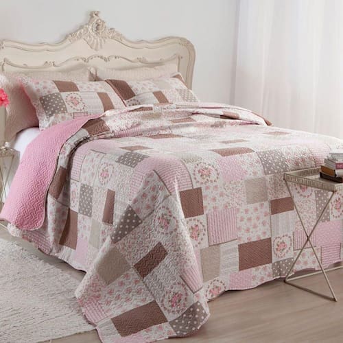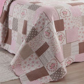 Kit Cobre Leito Colcha Daily Queen 3 Peças Dupla Face Estampado Floral - Patchwork 12 - 100% Poliéster