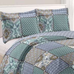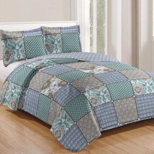 Kit Cobre Leito Colcha Daily Queen 3 Peças Dupla Face Estampado - Patchwork 26 - 100% Poliéster