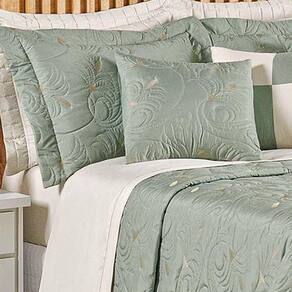Seu design se destaca pelo elegante bordado floral, que traz um ar clássico e delicado ao conjunto. A dupla face permite versatilidade na decoração, com opções que podem ser facilmente alternadas para renovar o visual do ambiente. Um item que une beleza e conforto, ideal para quem busca um estilo refinado e atemporal.
