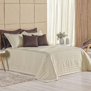 O matelado do cobre leito adiciona textura e volume, oferecendo um visual sofisticado que valoriza o ambiente. Esse conjunto é ideal para quem aprecia um estilo clean, mas que não abre mão de detalhes que conferem requinte e qualidade ao espaço.