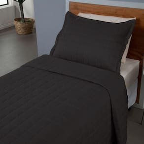 Kit Cobre Leito Colcha Dual Solteiro 2 Peças Matelado Dupla Face Liso Preto 100% Poliéster