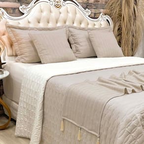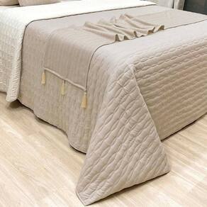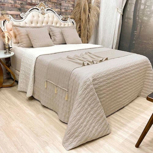 Kit Cobre Leito Colcha Dubai Queen 08 Peças Dupla Face Micropercal 200 Fios Xale Pompom Clean - Bege