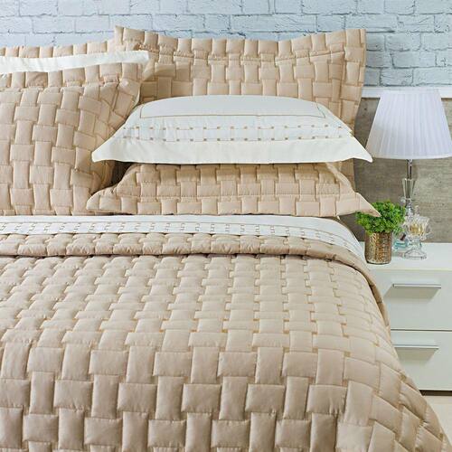 Kit Cobre Leito Colcha Garland Queen 100% Algodão 400 Fios Acetinado Bordado 5 Peças - Bege - Única