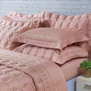 Kit Cobre Leito Colcha Garland Queen 100% Algodão 400 Fios Acetinado Bordado 5 Peças - Rosê E Fendi