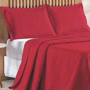 Kit Cobre Leito Colcha Ideale Queen 3 Peças Matelado Geométrico - Vermelho - 100% Poliéster