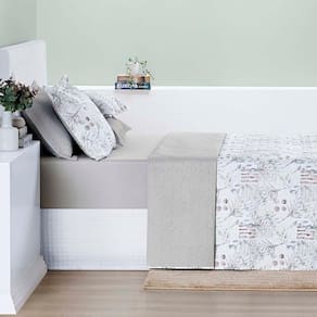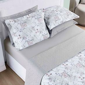Kit Cobre Leito Colcha Maggy Queen 3 Peças Dupla Face Percale 200 Fios - Protea Floral Cinza